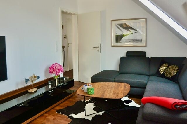 Ausfahrbare Markise auf dem Balkon. Fußbodenheizung im Badezimmer. Parkplatz vor dem Grundstück. Abschließbare Fahrradgarage für 4 Fahrräder zur alleinigen Nutzung. Bollerwagen für Strandutensilien. 10 Minuten Fußweg bis zum Südstrand.