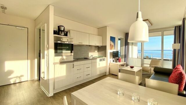 Apartment 25, Pier 25, Apartmenthaus Hafenspitze Blickrichtung offene See/Strand