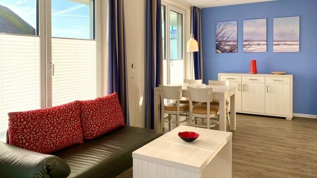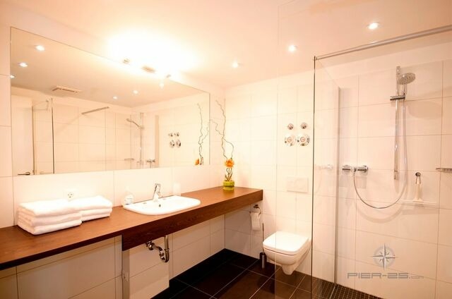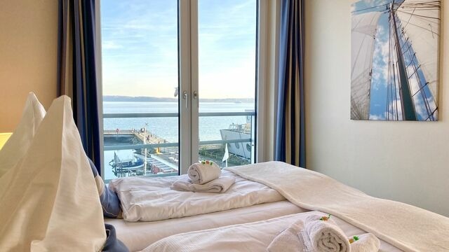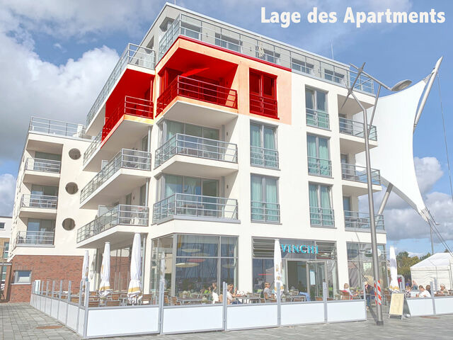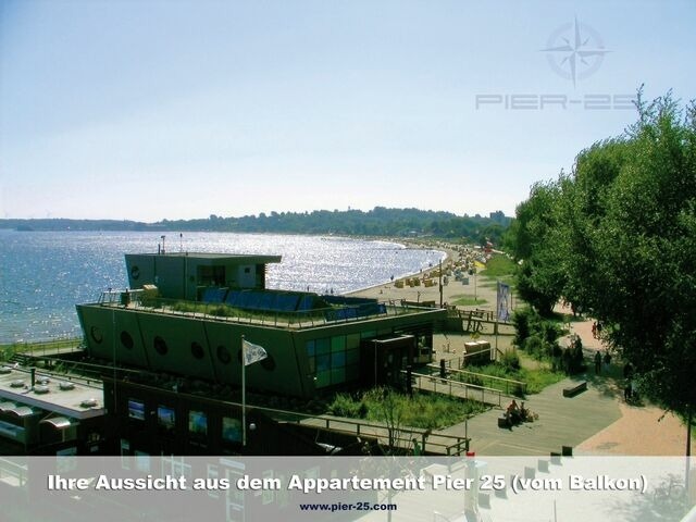 Ferienwohnung Apartment 25, Pier 25, Apartmenthaus Hafenspitze Blickrichtung offene See/Strand