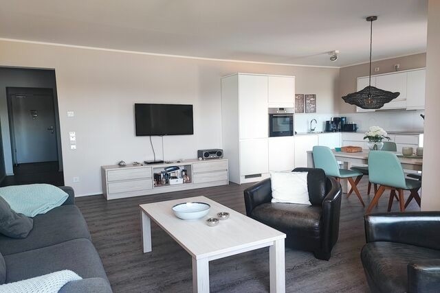 Die Ferienwohnung "Hafenspitze" (Bj. 2018, 4-Sterne) liegt nur 25m von der Hafenpromenade entfernt, auf der einen Seite schließen sich der Strand und seine lange Promenade an, auf der anderen Seite können Sie das Stadtzentrum und die naheliegende Gastronomie in wenigen Minuten erreichen. Der stilvoll eingerichtete, großzügige Wohn- und Essbereich, mit voll ausgestatteter Küche, ladt zum gemeinsamen Entspannen und Kochen ein! Die Ferienwohnung verfügt über einen Balkon mit wunderschönem Blick auf das Hafenbecken. Beide Schlafzimmer wurden mit modernen Doppelbetten (180x200 und 160x200), Kleiderschränken und TV-Geräten ausgestattet. Die Schlafzimmer bieten somit die gewünschte Erholung! Die Duschen in beiden Badezimmern sind ebenerdig. Die komplette Wohnung ist mit Vinylboden und Fußbodenheizung ausgestattet. Die im Hochparterre des Appartementhauses gelegene Ferienwohnung kann ''barrierefrei'' über einen Aufzug, mit direktem Zugang aus der Tiefgarage erreicht werden. Die Symbole vom Wohngrundriss können in der Darstellung von der tatsächlichen Innen- und Außengestaltung der Wohnung abweichen! buchbare und inklusive Serviceleistungen Wäschepakete optional wählbar gegen Gebühr: (Bettwäscheset/Handtuchset jeweils pro Aufenthalt/pro Person) können gegen eine Gebühr bestellt werden oder Selbst mitgebracht werden. Achten Sie bei Buchung an die gleiche Anzahl Wäschepakte wie gebuchten Personen. Ein Handtuchset pro Aufenthalt/pro Person ist ausgelegt für eine Woche (1 Duschtuch, 1 Handtuch), zusätzlich 1 Badvorlage pro Bad. Weitere Handtuchsets können bei längeren Aufenthalten z.B. ab dem 7. Tag gegen eine weitere Gebühr dazu bestellt werden 2 Topper auf den Matratzen 180x200 und 160x200 Babys und Kleinkinder bis zum vollendeten 2. Lebensjahr kostenfrei (Verleih Babyreisebett gegen Gebühr, Babyhochstuhl kostenfrei) Haustiere willkommen; müssen dazu gebucht werden (Miete Hund und Endreingung Hund) Parkplatz Nr.07 in der Tiefgarage (inklusive) Höhe Toreinfahrt in die Tiefgarage ist 2,00 m Fahrradabstellraum (Gemeinschaftsraum) Nichtraucherwohnung Anreise/Check-in Montag bis Sonntag ab 15:00 Uhr - 18:00 Uhr möglich. Abreise/Check-out Montag bis Sonntag bis 10:00 Uhr. Schlüsselübergaben finden persönlich statt, mit Begleitung in die Tiefgarage und zur Ferienwohnung. Treffpunkt: Mit Auto oder zu Fuß, stets seitlich neben dem Einfahrtstor zur Tiefgarage des Apartmenthauses. Aufgrund mehrerer Apartmenthäuser/Tiefgaragen nutzen Sie zur passenden Zieleingabe für das Navigationsgerät: Jungfernstieg 113 unabhängig von der Wohnungsadresse/Hauseingangsnummer. Telefonische Meldung ca. 30 Minuten vor Ihrer tatsächlichen Ankunftszeit, angepasst an die in Ihrem Mietvertrag angegebenen Mietbeginn/Check-in Uhrzeiten. Telefonische Erreichbarkeit für anreisende Gäste täglich ab 13:30 Uhr 17:30 Uhr. Gilt auch für früh am Vormittag Anreisende. Der Tag kann in Eckernförde für Spaziergänge, Einkäufe oder Kaffeetrinken genutzt werden. Öffentliche Parkplätze gibt es reichlich in Eckernförde. Für Stammgäste und insbesondere Spätanreisende, die weit nach 18:00 Uhr ankommen werden, bitten wir um rechtzeitige Mitteilung zur Vorbereitung einer kontaktlosen Schlüsselbox. Standort der Schlüsselbox und Codevergabe erfragen Sie bitte am Anreisetag oder frühestens einen Tag vorher.