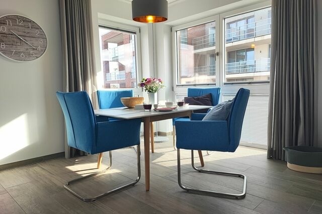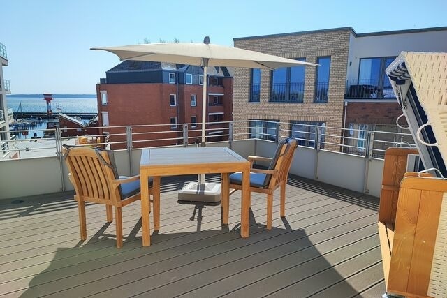 Die "MEERBLICK" liegt im Gebäude "Seglersteg 3", das mit weiteren Gebäuden das "Quartier Hafenspitze" bildet; in exklusiver Lage direkt an der Hafenpromenade. Ein eigener PKW-Stellplatz in der hauseigenen Tiefgarage und das Erreichen Ihres Feriendomizils über einen Fahrstuhl, sorgen für ein entspanntes und barrierefreies Ankommen. Der Abstellraum für Fahrräder lädt Sie dazu ein, Eckernförde und seine Umgebung auch aktiv zu erkunden. Die Lage ist ideal für aktiven Urlaub mit schönen Ausflügen: Die Ostsee gilt als eine der beliebtesten Ferienregionen in Deutschland. Kilometerlange Strände, Steilküsten und frische Meeresluft, das alles und noch viel mehr bietet die über 700 Jahre alte Stadt Eckernförde mit ihren rund 20.000 Einwohnern. Eckernförde ist idealer Ausgangspunkt für aktiven Urlaub und schöne Ausflüge. Zu Fuß den Ortskern erkunden oder eine Wander-/Fahrradtour starten, alles beginnt direkt vor Ihrer Haustür. Der historische Altstadtkern ist wenige Meter entfernt mit Cafés, Bäckereien, Biomarkt, Restaurants, Eisdielen, Bonbonkocherei, Apotheken, Boutiquen etc. Rauschende Wellen, die facettenreichen Schreie der Möwen, saubere, kühle Ostseeluft. Eingerahmt in den 4km langen Stadtstrand. Auch der mit vielen Blumen wunderschön bepflanzte Kurpark ist immer einen Besuch wert. Das Meerwasser-Wellenbad lädt zum Schwimmen und Entspannen ein. Viele Möglichkeiten bieten nahegelegene malerische Städte wie Kappeln und Arnis an der Schlei, die Domstadt Schleswig mit der alten Fischersiedlung Holm und die Landeshauptstadt Kiel. Nicht nur die Ostseeküste, sondern auch die Hüttener Berge und das Windebyer Noor bieten sich für schöne Ausflüge an. Des Weiteren ist die interessante Stadt Flensburg nur 60km entfernt, die nördlichste Stadt Deutschlands an der dänischen Grenze. Ein toller Tagesausflug führt in die Weltstadt Hamburg 120 km entfernt. Jedes Jahr finden Großveranstaltungen statt: Maritime Nostalgie trifft auf Moderne, wenn zum Beispiel wie jeden 1. Sonntag im Monat der Eckernförder-Fischmarkt veranstaltet wird, wo Jung und Alt auf allerlei Waren zum Stöbern und Kosten eingeladen werden. Alteingesessene Events, wie die Eckernförder Sprottentage (Juni), die Borbyer-Gilde (Juni) und die Aalregatta (Juni), geben Ihnen Möglichkeit, uns näher zu kommen und auf einen Schnack sitzen zu bleiben. Schreien Sie sich beim Strand Open Air am Südstrand (August) die Seele aus dem Leib und tauchen mit Ihrer Familie und Freunden beim Piratenspektakel ab (August) in eine Welt voller Rum und Rabauken. Kurz vorm Jahresende nochmal ein Perspektivwechsel auf dem Green Screen Naturfilm Festival (September), und abschließend können Sie ein weiteres Eckernförder Jahr auf dem Weihnachtsmarkt (November-Dezember) hinter sich lassen.