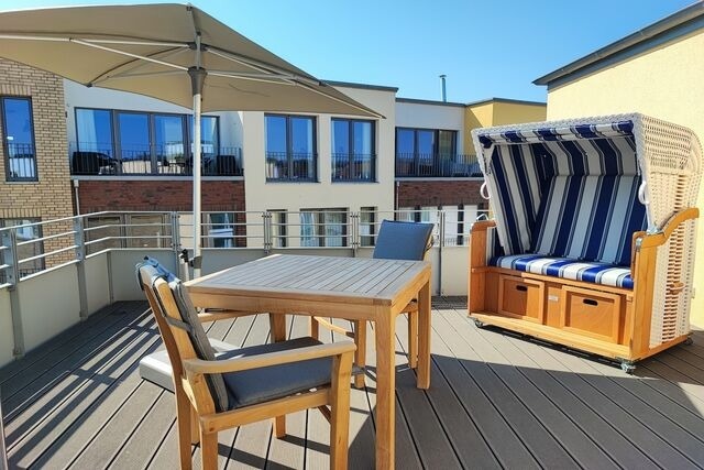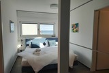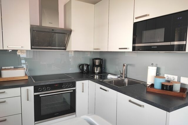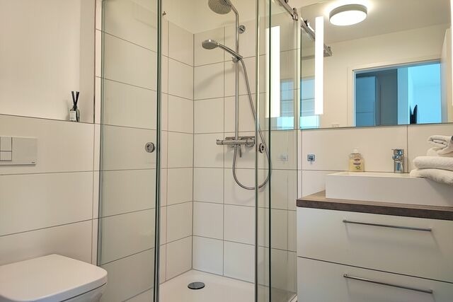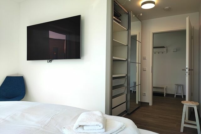 Die Ferienwohnung "MEERBLICK" (Bj. 2018) liegt nur 25m von der Hafenpromenade entfernt, auf der einen Seite schließen sich der Strand und seine lange Promenade an, auf der anderen Seite können Sie das Stadtzentrum und die naheliegende Gastronomie in wenigen Minuten erreichen. Einzigartig bei dieser Ferienwohnung - aus allen Räumen mit Blick aufs Wasser. Sie verfügt eine Sonnenterrasse (Südseite) mit MEERBLICK und über Balkon (Nordseite) mit Blick auf das Hafenbecken. Von beiden Seiten aus können Sie sowohl das Flanieren der Spaziergänger als auch die Veranstaltungen am Hafen von oben betrachten und den Blick genießen und weit schweifen lassen. Der offene und helle Wohn- und Essbereich, mit voll ausgestatteter Küche, lädt zum Entspannen und Kochen ein. Ein großer TV Bildschirm hängt an der Wand, so dass von allen Seiten darauf geschaut werden kann. Vom Wohnzimmer aus betreten Sie den Balkon mit dem fantastischen Blick über die Hafenpromenade und dem Hafenwasserbecken. Zu Zeiten der Aalregatta im Sommer können Sie die Segelboote vorbeiziehend betrachten. Das Schlafzimmer wurde mit einem modernen Boxspringbett (180x200), mit sehr großen TV -Bildschirm an der Wand und einem großzügigen Kleiderschrank mit Spiegelfront eingerichtet. Vom Schlafzimmer aus betreten Sie die Sonnenterrasse mit Meerblick, mit einem großem Strandkorb, Terrassenmöbeln und einem Sonnenschirm ausgestattet. Das Badezimmer on Suite ist mit ebenerdiger Dusche, einem WC und einem Waschbecken mit Schubladen ausgestattet. Zusätzlich haben Sie im Eingangsbereich mit dem Gäste-WC eine weitere Toilette. Der Flur ist mit viel Platz großzügig geschnitten. Für den längeren Aufenthalt stehen Ihnen in der Abstellkammer der Wohnung eine Waschmaschine und ein Trockner zur Verfügung. Die Fußböden der gesamten Wohnung sind mit Steinfliesen und komplett mit einer Fußbodenheizung durchzogen. Die im 2. Stock des Appartementhauses gelegene Ferienwohnung kann ''barrierefrei'' über einen Aufzug, mit direktem Zugang aus der Tiefgarage erreicht werden. Die Symbole vom Wohngrundriss können in der Darstellung von der tatsächlichen Innen- und Außengestaltung der Wohnung abweichen! buchbare und inklusive Serviceleistungen Wäschepakete inkl./inklusive: (Bettwäscheset/Handtuchset jeweils pro Aufenthalt/pro Person vorhanden). Ein Handtuchset pro Aufenthalt/pro Person ist ausgelegt für eine Woche (1 Duschtuch, 1 Handtuch), zusätzlich 1 Badvorlage pro Bad. Weitere Handtuchsets können bei längeren Aufenthalten z.B. ab dem 7. Tag gegen eine weitere Gebühr dazu bestellt werden. Haustiere nicht erlaubt Parkplatz Nr. 22 in der Tiefgarage (inklusive) Höhe Toreinfahrt in die Tiefgarage ist 2,00 m Fahrradabstellraum (Gemeinschaftsraum) Nichtraucherwohnung Anreise/Check-in Montag bis Sonntag ab 15:00 Uhr - 18:00 Uhr möglich. Abreise/Check-out Montag bis Sonntag bis 10:00 Uhr. Schlüsselübergaben finden persönlich statt, mit Begleitung in die Tiefgarage und zur Ferienwohnung. Treffpunkt: Mit Auto oder zu Fuß, stets seitlich neben dem Einfahrtstor zur Tiefgarage des Apartmenthauses. Aufgrund mehrerer Apartmenthäuser/Tiefgaragen nutzen Sie zur passenden Zieleingabe für das Navigationsgerät: Jungfernstieg 113 unabhängig von der Wohnungsadresse/Hauseingangsnummer. Telefonische Meldung ca. 30 Minuten vor Ihrer tatsächlichen Ankunftszeit, angepasst an die in Ihrem Mietvertrag angegebenen Mietbeginn/Check-in Uhrzeiten. Telefonische Erreichbarkeit für anreisende Gäste täglich ab 13:30 Uhr 17:30 Uhr. Gilt auch für früh am Vormittag Anreisende. Der Tag kann in Eckernförde für Spaziergänge, Einkäufe oder Kaffeetrinken genutzt werden. Öffentliche Parkplätze gibt es reichlich in Eckernförde. Für Stammgäste und insbesondere Spätanreisende, die weit nach 18:00 Uhr ankommen werden, bitten wir um rechtzeitige Mitteilung zur Vorbereitung einer kontaktlosen Schlüsselbox. Standort der Schlüsselbox und Codevergabe erfragen Sie bitte am Anreisetag oder frühestens einen Tag vorher.