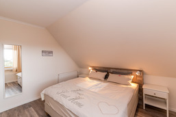 Unsere Wohnung Meer 2 ist aufgrund der Größe und Lage besonders für Familien bis zu 4 Personen geeignet und geht über 2 Etagen. Aus dem Wohnraum und dem Schlafzimmer oben haben Sie einen herrlichen Blick bis zum Meer. Der Spielplatz im Hof ist schnell für die Kinder zu ereichen.