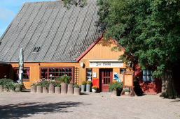 Eine dort am Ufer erstellte slaw. Hafenanlage mit Bootshäusern, Naust und dem weltweit ersten originale Nachbau eines slawischen Handelsschiffes sind zu besichtigen.