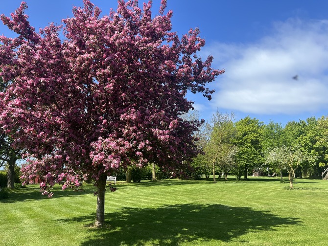 Eine große Gartenanlage mit altem Baumbestand, dicht gewachsenen Sträuchern und Hecken umgibt das Haus –ein natürlicher Windschutz für Kaffeegarten und Liegewiese!