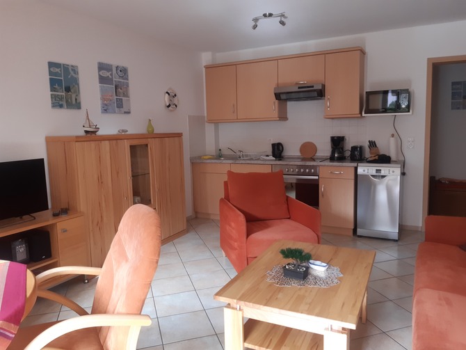 Die Ferienwohnung ist ca. 150m vom breiten Sandstrand entfernt. Zur kleinen Strandpromenade mit Restaurants, Eisdiele, Geschäften und Kinderspielplatz sind es ca. 80m.