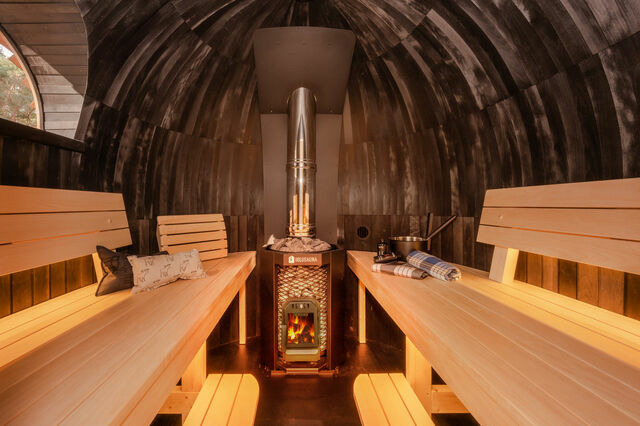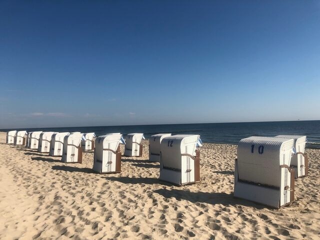 Eine urige Außensauna mit Ruheraum (Kamin) sowie ein Badezuber stehen unseren Hausgästen zur Verfügung. Von April bis Oktober können Sie sich einen Strandkorb direkt am Aufgang 4 Q mieten.