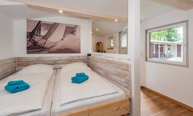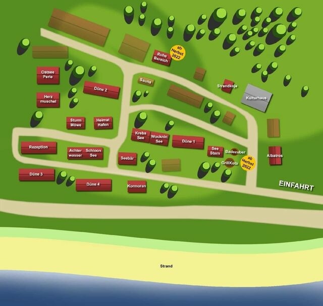 Eine urige Außensauna mit Ruheraum (Kamin) sowie ein Badezuber stehen unseren Hausgästen zur Verfügung. Von April bis Oktober können Sie sich einen Strandkorb direkt am Aufgang 4 Q mieten.