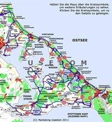 Apotheken: auf Usedom gibt es >6 Apotheken, einige davon im Ort Heringsdorf. Beispiele: Marsson Apotheke Tel. 038378 23401 oder Linden Apotheke Tel: 038378 803383 Ärzte: mehrere Allgemeinärzte/-innen und Zahnärzte/-innen auf Usedom stellen die medizinische Versorgung sicher Aussenanlage: großzügig angelegte Ferienhausanlage auf etwa 10 ha großem gepflegtem Areal, mit lichtem Baumbestand Badestrand an der Ostsee: Ostseebad Ahlbeck 8 km Bank: Volksbank Wolgast in Zirchow Einkaufen: Zirchow mit zahlreichen Geschäften, zum Beispiel Frischemarkt Bluhm u.a. in wenigen Minuten erreichbar Fahrradverleih: Mehrere Fahrradverleihgeschäfte liefern Ihnen Fahrräder ans Ferienhaus Golf: Zwei Golfplätze bietet Usedom: Baltic Hills Usedom ist eine 19-Loch-Golfanlage, der GOLFPLATZ BALMER SEE ist ein 18-Loch-Platz Interessantes um die Ecke: die Erlebniswelt Hangar10 mit Flugzeugausstellung, Flugsimulator, Spielplatz, Indoor-Kletteranlage, Restaurant u.v.a.m. Interessantes um die Ecke: das Stettiner Haff: in ca 300m Entfernung gelegen. Das Haff ist ein 900 km² großes, nur leicht salzhaltiges Küstengewässer von Oder und Peene Kutsche und Planwagen: mehrere Reiterhöfe und Hotels bieten romantische Kutschfahrten Mückenschutz: Ja, ist im ganzen Haus eingerichtet Radtouren: Usedom wie auch die gesamte Ostseeküste ist ein Radfahrerparadies. Ein Beispiel: der Usedom Rundweg Radtour Usedom Rundweg Reiten: Reiterhof Zirchow Zitat: "Geführte Ausritte auf der Ostseeinsel Usedom auf geländesicheren Pferden und Ponys..., Reiten für Kinder, Tagesritte." Schiffsausflüge: Ab Hafen Kamminke - regelmäßige Schiffsfahrten zum Ostseebad Swinemünde oder nach Stettin - da sind Sie dann in Polen. Seebäder: Usedoms Ostseeküste bietet mit den 3 Kaiserbädern Ahlbeck, Bansin und Heringsdorf eine der längsten Strandpromenaden Europas Zoo: Bansin zeigt in seinem kleinen Tropenzoo exotische Tiere und Pflanzen Tropenzoo