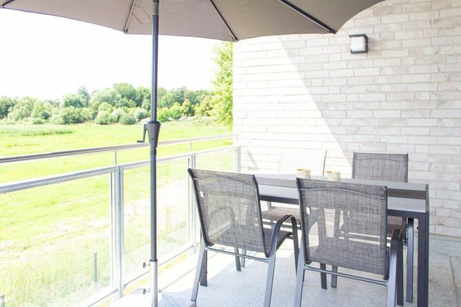 Die ca. 68 m² große Ferienwohnung ist liebevoll und modern eingerichtet. Sie verfügt über ein Wohnzimmer, eine Küche, zwei Schlafzimmer, ein Badezimmer sowie einen Balkon. Die Strandentfernung beträgt ca. 200 Meter.