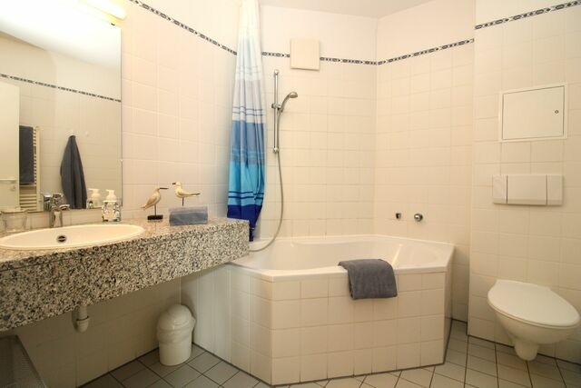 Lage Die 1997 erbaute Appartementanlage "Strandjuwel" liegt absolut zentral und strandnah in der Strandstraße, eine der besten und beliebtesten Lagen im östlichen Stadtzentrum des Ostseebades Kühlungsborn. Die dem Stil der Bäderarchitektur angepasste Wohnanlage gliedert sich in den vorderen Teil der Anlage (Haus A) sowie die beiden Häuser B und C auf dem rückwärtigen Grundstück. Zahlreiche Geschäfte, kleine Boutiquen, Bistros, Cafés und Restaurants in der direkten Umgebung laden Sie zum Bummeln und Verweilen ein. Auch zum Bäcker - für die frischen Brötchen am Morgen - sind es nur wenige Schritte. Darüber hinaus befinden sich Ärzte, eine Apotheke, Banken, Post sowie ein großer und bestens sortierter EDEKA-Einkaufsmarkt in der direkten Nähe. Von Ihrer Ferienwohnung sind es nur ca. 150 m zur Seebrücke und zur wunderschönen und mehr als 3 km langen Strandpromenade mit direktem Zugang zum ca. 6 km langen, kinderfreundlichen, feinen weißen Sandstrand. Hier können Sie ausgedehnte Spaziergänge nach Kühlungsborn-West oder zum nahegelegenen Yachthafen unternehmen. Alternativ stehen Ihnen kilometerlange komfortabel angelegte Wege des angrenzenden Stadtwaldes (133 ha) für Spaziergänge oder Fahrradtouren zur Verfügung - hier genießen Sie Erholung pur ...! Als besonderes Highlight kommen unsere Gäste der Appartementanlage "Strandjuwel" in den Genuss einer rabattierten Nutzungsmöglichkeit der attraktiven Wellness- und Freizeitoase "KÜBOMARE" mit Meerwasser- und Saunawelt unmittelbar vor unserer Haustür (2 Gehminuten). Näheres hierzu finden Sie in der untenstehenden Beschreibung. Zum Bahnhof-Ost mit der historischen Dampf-Bäderbahn "Molli" und dem Busbahnhof-Ost sind es zu Fuß nur ca. 10 Minuten. Beschreibung App. 209 Das strandnahe und freundliche 2-Zimmer-Appartement 209 (ca. 51 m²) erstreckt sich über 2 Etagen (Erdgeschoss und 1. Obergeschoss / Galerie) im Innenhof des Hauses A. Das Appartement besitzt ein hohes Maß an Wohlfühlkomfort und ist komplett eingerichtet. Der Bodenbelag im Erdgeschoss (Küchen-, Ess- und Wohnbereich) sind helle Fliesen, im Obergeschoss (Galerie und Schlafzimmer) liegt hochwertiger Vinyl-Designbelag in edler Holzoptik. Die Ferienwohnung bietet Schlafmöglichkeiten für insgesamt 4 Personen. Für Kleinkinder stellen wir Ihnen bei Bedarf (gegen ein geringes Entgelt) auch gerne ein Kinderreisebett sowie einen Kinderhochstuhl zur Verfügung. Das geräumige und helle Wohn-/Esszimmer verfügt über eine separate Sitzgruppe mit bequemer (ausziehbarer Schlaf-) Couch, 2 Sesseln und Couchtisch, einen separaten Esstisch mit 4 Stühlen, einen Schrank sowie eine Kommode. Vom Wohnzimmer aus haben Sie direkten Zugang zu der ca. 6,5 m² großen und sonnigen Terrasse (nach Süd-Osten zum Innenhof ausgerichtet) mit Gartenmöbeln. Hier sitzen Sie entspannt und gemütlich im Grünen und können abends bei einem guten Glas Wein in Ruhe die lauen Sommernächte genießen! Zu Ihrer Unterhaltung steht Ihnen in der Ferienwohnung ein modernes Flatscreen-TV-Gerät sowie ein DVD-Player zur Verfügung. Darüber hinaus verfügt die Wohnung über kostenfreies WLAN (ohne Gewähr). Eine kleine Auswahl an Büchern ist ebenfalls vorhanden. Die offene Küche beinhaltet eine voll ausgestattete Einbauküchenzeile mit 2-Zonen-Ceran-Kochfeld, Backofen, Dunstabzug, Kühlschrank mit Gefrierfach, Geschirrspülmaschine, Kaffeemaschine, Wasserkocher und Toaster. Die Küche ist mit Geschirr, Gläsern, Besteck und Töpfen komplett ausgestattet. Über die innenliegende Treppe erreichen Sie die Galerie im 1. Obergeschoss. Hier befindet sich eine kleine Leseecke mit 2 bequemen Korbsesseln, einem kleinen Tisch, ein Sideboard und eine Kommode der ideale Rückzugsort für ungestörten Lesegenuss! Das gemütliche Schlafzimmer ist mit einem bequemen Doppelbett (2 x 80 cm x 200 cm), Nachttischen mit Nachttischlampen, einem geräumigen Kleiderschrank, einem Kleiderständer sowie einem Stuhl eingerichtet. Eine zusätzliche bequeme Schlafmöglichkeit für eine weitere 3. bzw. 4. Person bietet die ausziehbare Schlafcouch (2 x 80 x 200 cm) im Wohnzimmer. Für einen guten Schlafkomfort verfügen sowohl das Schlafzimmer wie auch das Wohnzimmer über Verdunkelungsrollos. Das geräumige Badezimmer verfügt über eine Badewanne, einen großen Waschtisch, WC, Föhn, ein kleines Regal, einen Handtuch-Heizkörper sowie ausreichend Ablagemöglichkeiten. Ihre Jacken und Schuhe können Sie an der Garderobe mit Schuhständer im Eingangsbereich der Wohnung unterbringen. Eine gemeinschaftliche (Münz-)Waschmaschine und ein Wäschetrockner befinden sich im Waschkeller der Wohnanlage und können von allen Gästen mitbenutzt werden. Ein kleiner Kinderspielplatz im Innenhof sorgt dafür, dass auch bei den Kleinsten keine Langeweile aufkommt. Als besonderes Highlight kommen unsere Gäste der Appartementanlage "Strandjuwel" in den Genuss einer rabattierten Nutzungsmöglichkeit der attraktiven Wellness- und Freizeitoase "KÜBOMARE" mit Meerwasser- und Saunawelt unmittelbar vor unserer Haustür (2 Gehminuten). In der Meerwasserwelt erwarten Sie bei einer angenehmen Wassertemperatur von 29 Grad zwei große Schwimmbecken, in der Saunawelt (mit Innen- und Außenbereich) verschiedene Saunen (u.a. finnische Sauna, Biosauna, Kajütensauna, Trockensauna, Kelo-Erd- und Blockhaussauna, Dampfbad), verschiedene Ruhebereiche und vieles mehr. Alles Weitere finden Sie im Internet unter www.kuebomare-kuehlungsborn.de nähere Einzelheiten zu unseren rabattierten Agentur-Vorzugskonditionen erfragen Sie bitte bei den Mitarbeitern unseres Agenturbüros. Ihr Auto können Sie kostenpflichtig auf dem zu Ihrer Wohnung gehörenden PKW-Stellplatz (Nr. 209) im Innenhof der Anlage parken. Ihre Fahrräder können ebenfalls im Innenhof in den dort vorhandenen Fahrradständern abgestellt werden. Sofern Sie keine eigenen Fahrräder mitbringen, können Sie diese bei Interesse bei einem Fahrradverleih in unmittelbarer Nähe Ihrer Wohnanlage mieten. Auf