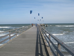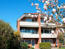 300m z Sandstrand u zur Seebrücke, 2-Zi-Whg, 57 qm, 1 sep. Schlafzi,gr. Wohn-Ess-Zimmer,offene Küche, sonniger Südwestbalkon,viel Grün,moderne u hochwertige Ausstattung, WLAN, TG-Stellplatz inkl., Hund erlaubt, zentrale Lage, max. Belegung 5 Personen