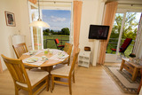 Im lichtdurchfluteten Wohn-Eßbereich genießen Sie den freien Blick auf Felder, Wiesen und die Ostsee.