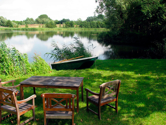 Wir bieten Ihnen in idyllischer Lage Ruhe und Erholung auf unserem Wassergrundstück.