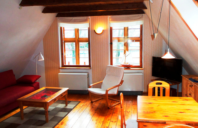 Das App. befindet sich im Dachgeschoß eines alten Fischerhauses direkt am Strom mit herrlichem Blick auf diesen. Es verteilt sich auf 2 Ebenen; den Wohnraum einschließlich Kochnische, Essecke, Bad und den Schlafraum mit 2 Einzelbetten im Spitzdachbereich.