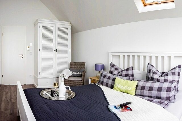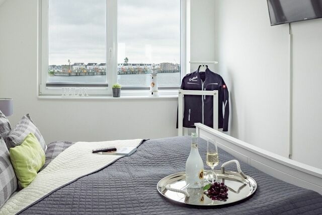 Kurzbeschreibung: Einzigartiger Blick auf die Schlei und das Hafenbecken, Kamin, große Badewanne mit Whirlpoolfunktionen, Infrarotsauna und 180 Grad Panoramablick. Lagebeschreibung: Direkt an der Ostsee entsteht in einer der schönsten Urlaubsregionen Deutschlands, im Nordosten Schleswig-Holsteins direkt zwischen Schleimündung und Ostsee ein neues, einzigartiges Ferienresort der Extraklasse, das durch seine Vielfalt besticht.Das Ostseeresort Olpenitz soll Nordeuropas größtes maritimies Ferienresort werden. Eingebettet in eine unvergleichliche Natur, ausgestattet mit allem, was den Aufenthalt das ganze Jahr über angenehm und abwechslungsreich macht: eine große Marina, Restaurants, Cafés, Shops und ein Freizeitangebot, das keine Wünsche für eine neue Erlebnis-Urlaubs-Welt offen läßt. Vor Ort erwarten Sie folgende Highlights: Fußläufig zum traumhaften, kilometerlangen, DLRG-betreuten Weidefelder Strand .Dieser hat mehrere Strandabschnitte (allgemeines Baden, FKK, Hundestrand und zum weltweit einmaligen Flachwasser Windsurf und Kite- Revier). Hier befindet sich auch ein gemütliches Strandrestaurant mit Strandkorbverleih, Toiletten und einem Spielplatz. Edeka Supermarkt mit Bistro, Eis und weiteren Köstlichkeiten, Yachthafen mit Promenade, frischer Fisch direkt vom Kutter, Ausflugs-Traditionssegler, Kanuverleih und Optimisten Segelkurse der Globetrotter Akademie, Bootsverleih und BBQ-Donut Verleih der Olpenitz Marina, Food Trucks mit kulinarischem Angebot zu ausgewählten Terminen und natürlich spektakuläres Hafenkino. Das kleine verträumte Dorf Olpenitz ganz in der Nähe (3 km entfernt) mit seinen schönen (Reet-) Häusern bietet Restaurants und Einkaufsmöglichkeiten ebenso wie der bekannte Fischerort Kappeln an der Schlei mit kleinem Hafenbetrieb in ca. 7 km Entfernung. Kappeln wurde u. a. auch bekannt unter dem Namen "Deekelsen" aus der beliebten Fernsehserie "Der Landarzt". Ein Ausflug nach Bad Arnis, Deutschlands kleinster Stadt oder nach Eckernförde zur Aalregatta oder zum Piratenspektakel im August oder nach Sieseby, dem wunderschönen Fachwerksdorf direkt an der Schlei. oder, oder, oder.. Ausstattungen: Umgeben von Wasser auf einer schmalen Landzunge zwischen dem Ostseefjord Schlei und der Marina des OstseeResort Olpenitz gelegen, in unmittelbarer Nähe zum kleinen Strand überzeugt dieses Ferienobjekt mit seiner Großzügigkeit, einem traumhaften Wasserblick und ganztags Sonne auf dem gen Süden ausgerichtetem Balkon. Bei diesem Ferienobjekt handelt es sich um eine Maisonette Wohnung im ersten und zweiten Obergeschoss. Die Ferienwohnung Ostseeflair by Seeblick Ferien ORO betritt man über eine Außentreppe, von hier könnte man sofort auf den ersten Südbalkon (ca.25 m²) gelangen, der mit einem Strandkorb, Teak-Deckchair und weiteren gemütlichen Möbeln zum Relaxen auf Sie wartet. Der Eingangsbereich führt in den Wohn-und Essbereich mit zusätzlichem Duschbad und WC. Auf der zweiten Ebene befindet sich Ihr Badezimmer, dies lässt Wellnessherzen höherschlagen, denn es verfügt über eine bodengleiche XXL Walk-In-Dusche, eine Whirlpool-Badewanne, eine Sauna (Infrarotkabine) mit Farblichttherapie und ein Radio mit Bluetooth. An der Wellnessoase vorbei, folgen zwei gut gestaltete Schlafzimmer mit Platz für fünf Erwachsene und einen traumhaften Blick aufs Wasser. Das Masterbedroom verfügt über ein Doppelbett (1,80 x 2,00) mit zusätzlichem 40 Zoll Smart TV, Blick auf die Marina, während ein Etagenbett (unten1,40 x 2,00 max.180kg), (oben 90x200 max. 75 kg) für 3 Personen im zweiten Schlafzimmer mit Blick auf die Schlei, auf Sie wartet. Im Fokus steht aber der perfekt umgesetzte lichtdurchflutete Wohn- und Essbereich mit Holz befeuertem Kaminofen, bodentiefen Panoramafenstern, welcher Loftartig gestaltet ist, sodass alle Räume fließend ineinander übergehen und sich der Wohnbereich mit der Natur verbindet. Die Integration der offenen Küche mit hervorragender Ausstattung und funktionalem Design, steht dem gemütlichen Beisammensein auch beim Zubereiten von allerlei Köstlichkeiten nichts im Wege. Die Wasserkulisse vor dem Essbereich mit 180 Grad Panoramablick auf den gesamten Hafen und die Ostsee ist hierbei zum Greifen nah das ist Ostseeflair. Den zweiten Nordbalkon (ca. 8m²) betritt man über den Wohnbereich, hier können es sich unsere Gäste auf einer zusätzlichen Bestuhlung gemütlich machen und bei einem Sundowner mit Abendsonne den Tag ausklingen lassen. Die gesamte Ferienwohnung lässt sich über die Fußbodenheizung einfach temperieren und bietet dank des Kaminofens und der Sauna das ganze Jahr über eine angenehme Wärme und eine gemütlich-wohlige Atmosphäre. Für Unterhaltung sorgen im Wohnbereich ein 55 Zoll Smart TV mit Bluetooth und Samsung Soundbar, eine Playstation, Blu-ray-Player, ein separates Internet Radio sowie eine Spielesammlung. Der Weber Elektrogrill rundet die hochwertige Ausstattung ab. Sollten Sie das Los gezogen haben im Urlaub arbeiten zu müssen, ist das auf keinen Fall eine Niete. In dieser Unterkunft befindet sich ein portabler Schreibtisch, den Sie nach Ihren Vorlieben, nach der besten Aussicht oder Sonnenausrichtung, platzieren können.