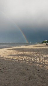 Balkon und Terrasse mit Meerblick ca. 40 qm groß. Der direkte Zugang zum Strand führt über Treppen zum Meer, ansonsten ist ein kleiner Schlenker nötig ca. 200 m um treppenlos über den Hangweg zum Strand zu gelangen.