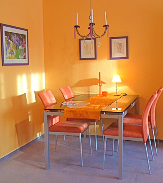 Unsere Fewo verfügt über eine sonnige Terrasse mit entsprechenden Gartenmöbeln und einer elektrischen Markise. Im Sommer genießen Sie abends den Sonnenuntergang beim Grillen Ihrer Steaks und Bratwürste.