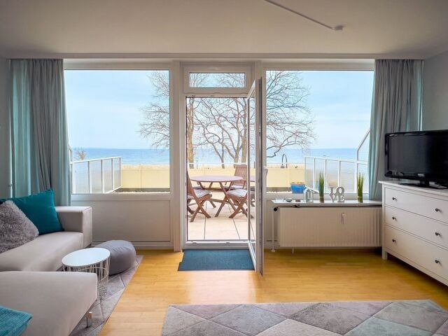 Kurzbeschreibung: Das moderne 1-Zimmer-Appartement für 2 Personen bietet atemberaubenden Ostseeblick, eine großzügige Terrasse und liegt zentral an der Strandpromenade perfekt für einen unvergesslichen Urlaub am Meer! Lagebeschreibung: Die Unterkunft befindet sich in der Strandallee 124, direkt an der belebten Strandpromenade, die zahlreiche einladende Lokalitäten und Aktivitäten bietet. Von der großen Terrasse des Apartments bietet sich ein atemberaubender Panorama-Blick über die Lübecker Bucht, der den Gästen unvergessliche Sonnenaufgänge beschert. In unmittelbarer Nähe befinden sich attraktive Ausflugsziele wie die Ostsee mit ihren Stränden, die zum Entspannen und Wassersport einladen. Die Anreise gestaltet sich unkompliziert, da die Unterkunft mit dem PKW gut zu erreichen ist. Der kostenlose Stellplatz in der Tiefgarage steht, sofern verfügbar, zur Verfügung. Alternativ sind öffentliche Parkplätze in der Umgebung gegen Gebühr nutzbar. Das Appartement ist bequem über einen Aufzug erreichbar, ohne Treppen überwinden zu müssen. Rauchen und Tierhaltung sind nicht gestattet. Ausstattungen: Das 1-Zimmer-Appartement im 1. OG bietet einen herrlichen Panoramaausblick über die Ostsee und ist über einen Lift erreichbar. Es besticht durch eine geschmackvolle, moderne Einrichtung mit einem Holzfußboden aus hellem Bambus. Der großzügige Wohn-Schlafraum umfasst ein Doppelbett für zwei Personen, ein Ecksofa, einen Esstisch mit zwei Stühlen sowie eine passende Vitrine und einen Kleiderschrank. Die kleine offene Küche ergänzt das Raumkonzept. Das Badezimmer ist mit einer Eckdusche, einem Waschtisch mit Spiegel und einem WC ausgestattet. Kostenfreies WLAN steht zur Verfügung. Zur gemeinschaftlichen Nutzung befindet sich im Haus eine Waschmaschine mit Münzeinwurf. Ein PKW-Stellplatz in der Tiefgarage kann genutzt werden, sofern verfügbar. Rauchen und Tierhaltung sind in diesem Appartement nicht gestattet. Ideal für einen erholsamen Urlaub mit fantastischem Meerblick.
